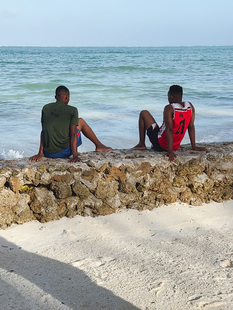This photo series follows young men on the beaches of the island of Zanzibar. In a region where tourism is the main economic driver and the number of international visitors breaks records annually, they try to find income around tourist zones. On the island’s beaches, young men attempt to find their place in the tourism-dependent economy. They sell jewelry or souvenirs, give surfing lessons, hang out, or swim in the sea. Many men falsely pose as Maasai, dressed as “authentic warriors” in traditional attire. They actively seek contact with female tourists, hoping for attention, gifts, money, dinners, or a long-term relationship, on an island without a social safety net.